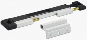 The LOCKiT! Interlocking Latch is designed to securely lock together two sliding glass doors that meet in the middle. The interlocking latch attaches to one sliding door and secures the second sliding door by fitting into the LOCKiT! sliding glass door mounted on the second door.